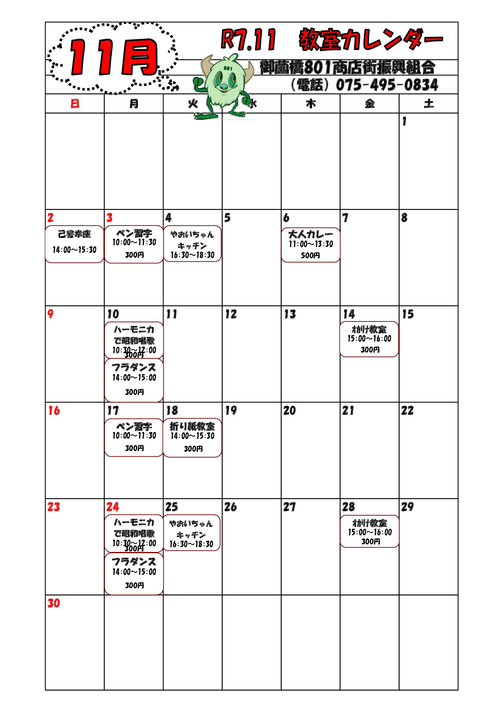 801広場 10月カレンダー